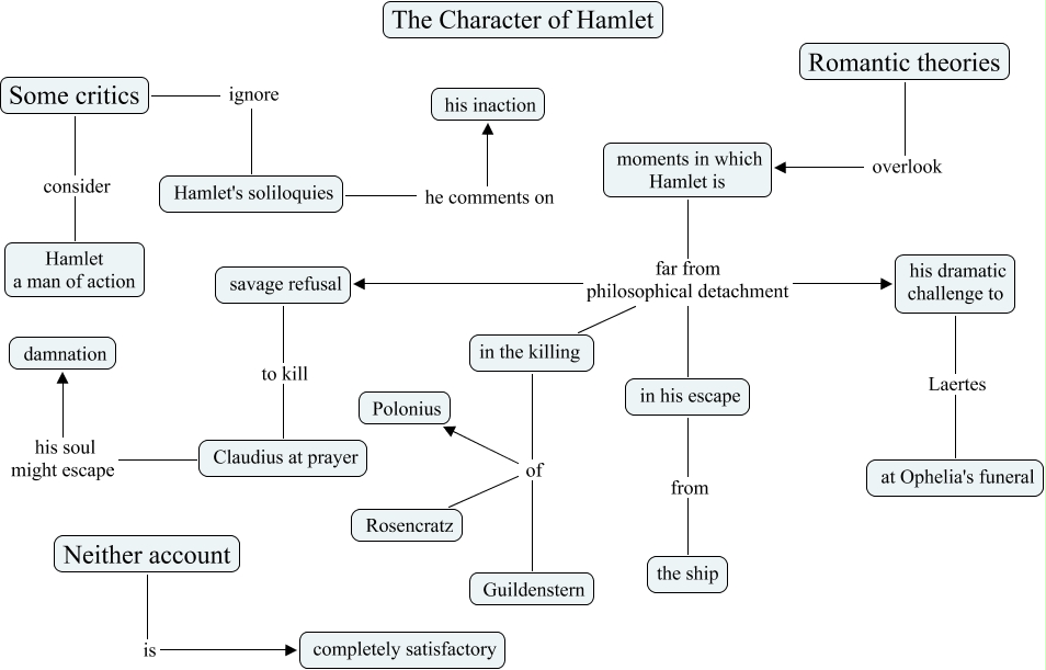Questa Mappa Concettuale ha informazioni correlate a: The Character of Hamlet, Some critics ignore Hamlet's soliloquies, in his escape from the ship, moments in which Hamlet is far from philosophical detachment savage refusal, his dramatic challenge to Laertes at Ophelia's funeral, savage refusal to kill Claudius at prayer, moments in which Hamlet is far from philosophical detachment in his escape, Neither account is completely satisfactory, Claudius at prayer his soul might escape damnation, moments in which Hamlet is far from philosophical detachment his dramatic challenge to, in the killing of Rosencratz