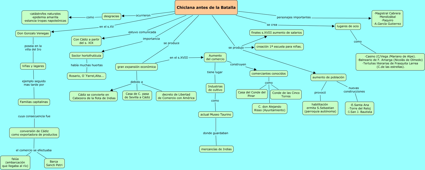 25.Jorge Valdés Guerrero.Chiclana antes de la batalla, aumento de población provocó habilitación ermita S.Sebastian (parroquia autónoma), Chiclana antes de la Batalla se produjo aumento de población, Familias capitalinas cuya consecuencia fue conversión de Cádiz como exportadora de productos, Chiclana antes de la Batalla se crea lugares de ocio, Chiclana antes de la Batalla se produjo finales s.XVIII aumento de salarios, Chiclana antes de la Batalla se produjo creación 1ª escuela para niñas., comerciantes conocidos como Conde de las Cinco Torres, comerciantes conocidos como C. don Alejando Risso (Ayuntamiento), gran expansión económica en el s.XVIII Aumento del comercio, Chiclana antes de la Batalla importancia Sector hortofrutícula
