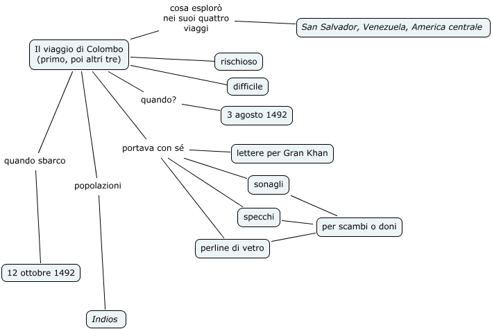 Questa Cmap, creata con IHMC CmapTools, contiene informazioni relative a: Viaggio di Colombo, Il viaggio di Colombo (primo, poi altri tre) popolazioni Indios, Il viaggio di Colombo (primo, poi altri tre) portava con sé sonagli, Il viaggio di Colombo (primo, poi altri tre) ???? rischioso, Il viaggio di Colombo (primo, poi altri tre) portava con sé specchi, Il viaggio di Colombo (primo, poi altri tre) quando? 3 agosto 1492, Il viaggio di Colombo (primo, poi altri tre) cosa esplorò nei suoi quattro viaggi San Salvador, Venezuela, America centrale, Il viaggio di Colombo (primo, poi altri tre) quando sbarco 12 ottobre 1492, Il viaggio di Colombo (primo, poi altri tre) portava con sé lettere per Gran Khan, perline di vetro ???? per scambi o doni, specchi ???? per scambi o doni, sonagli ???? per scambi o doni, Il viaggio di Colombo (primo, poi altri tre) ???? difficile, Il viaggio di Colombo (primo, poi altri tre) portava con sé perline di vetro