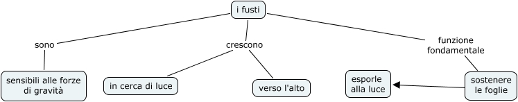 Questa Cmap, creata con IHMC CmapTools, contiene informazioni relative a: il fusto cresce verso l'alto, i fusti crescono in cerca di luce, i fusti sono sensibili alle forze di gravità, i fusti funzione fondamentale sostenere le foglie, i fusti crescono verso l'alto, sostenere le foglie ???? esporle alla luce