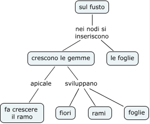 Questa Cmap, creata con IHMC CmapTools, contiene informazioni relative a: sul fusto crescono le gemme e le foglie, sul fusto nei nodi si inseriscono le foglie, sul fusto nei nodi si inseriscono crescono le gemme, crescono le gemme apicale fa crescere il ramo, crescono le gemme sviluppano foglie, crescono le gemme sviluppano fiori, crescono le gemme sviluppano rami
