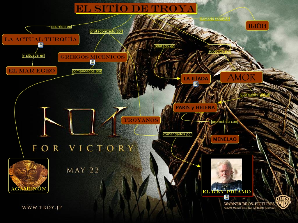 EL SIT�?O DE TROYA, EL SIT�?O DE TROYA protagonizado por TROYANOS, PARIS y HELENA prometida con MENELAO, EL SIT�?O DE TROYA protagonizado por griegos micénicos, AMOR que existe entre PARIS y HELENA, LA ACTUAL TURQU�?A y situada en EL MAR EGEO, EL SIT�?O DE TROYA llamada también ILIÓN, EL SIT�?O DE TROYA sucedida por AMOR, EL SIT�?O DE TROYA ocurrido en LA ACTUAL TURQU�?A, TROYANOS comandados por el rey príamo, griegos micénicos comandados por agamenón