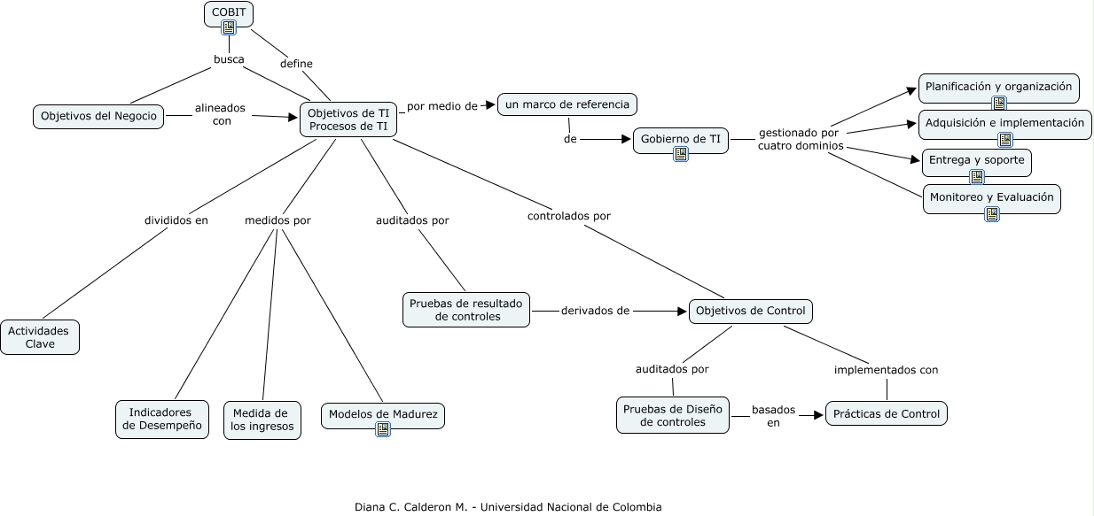 Este Cmap, tiene información relacionada con: COBIT, Gobierno de TI gestionado por cuatro dominios Planificación y organización, Objetivos de TI Procesos de TI auditados por Pruebas de resultado de controles, Gobierno de TI gestionado por cuatro dominios Monitoreo y Evaluación, Gobierno de TI gestionado por cuatro dominios Adquisición e implementación, un marco de referencia de Gobierno de TI, Pruebas de Diseño de controles basados en Prácticas de Control, COBIT busca Objetivos de TI Procesos de TI, COBIT busca Objetivos del Negocio, Objetivos de TI Procesos de TI controlados por Objetivos de Control, Objetivos del Negocio alineados con Objetivos de TI Procesos de TI, Objetivos de TI Procesos de TI divididos en Actividades Clave, Objetivos de Control auditados por Pruebas de Diseño de controles, Objetivos de Control implementados con Prácticas de Control, Objetivos de TI Procesos de TI medidos por Medida de los ingresos, Pruebas de resultado de controles derivados de Objetivos de Control, Objetivos de TI Procesos de TI medidos por Modelos de Madurez, Gobierno de TI gestionado por cuatro dominios Entrega y soporte, Objetivos de TI Procesos de TI por medio de un marco de referencia, Objetivos de TI Procesos de TI medidos por Indicadores de Desempeño, COBIT define Objetivos de TI Procesos de TI