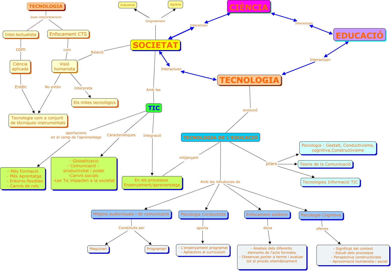 Este Cmap, tiene información relacionada con: Mapa 2, Visió humanista Interpreta Els mites tecnològics, En els processos Ensenyament/aprenentatge mitjançant TECNOLOGIA DE L'EDUCACIÓ, Enfocament sistèmic dona - Analisis dels diferents elements de l'acte formatiu - Dissenyar,portar a terme i avaluar tot el procés sitemàticament, SOCIETAT Amb les TIC, TECNOLOGIA DE L'EDUCACIÓ Amb les influències de Psicologia Conductista, Ciència aplicada Entén Tecnologia com a conjunt de tècniques instrumentals, SOCIETAT Interactuen CIÈNCIA, TECNOLOGIA DE L'EDUCACIÓ pilars Psicologia : Gestalt, Conductivisme, cognitiva,Constructivisme, CIÈNCIA Interactuen EDUCACIÓ, Mitjans audiovisuals i de comunicació Constituits per Programari, TIC Integració En els processos Ensenyament/aprenentatge, TECNOLOGIA DE L'EDUCACIÓ Amb les influències de Mitjans audiovisuals i de comunicació, EDUCACIÓ Interactuen TECNOLOGIA, TIC aportacions en el camp de l'aprenentage - Més Formació - Més Aprentatge - Entorns flexibles - Canvis de rols, TECNOLOGIA DE L'EDUCACIÓ Amb les influències de Psicologia Cognitiva, Psicologia Cognitiva ofereix - Significat del context - Estudi dels processos - Perspectiva constructivista - Aproximació humanista i social, Enfocament CTS com Visió humanista, SOCIETAT Originalment Industrial, SOCIETAT Originalment Agrària, TECNOLOGIA dues interpretacions Enfocament CTS