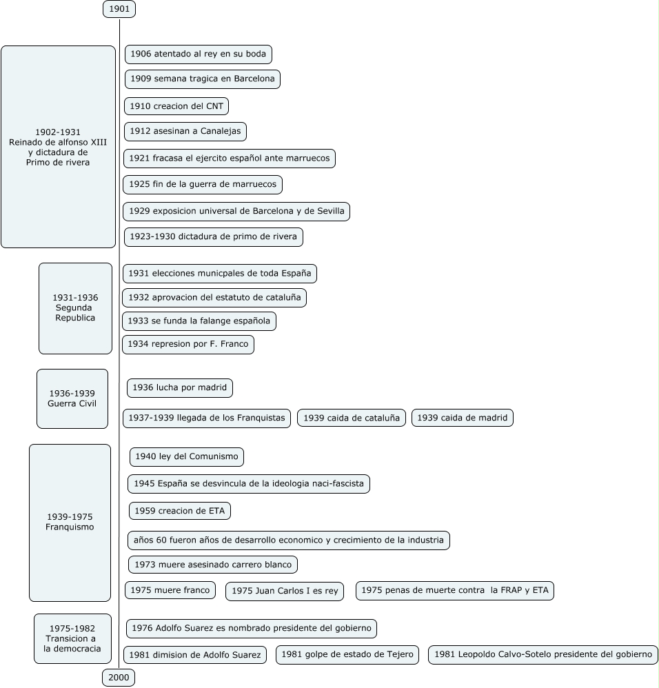 Este mapa conceptual tiene información relacionada a: 20.Pepe Romero Morales.España en el siglo XX, 1901 2000