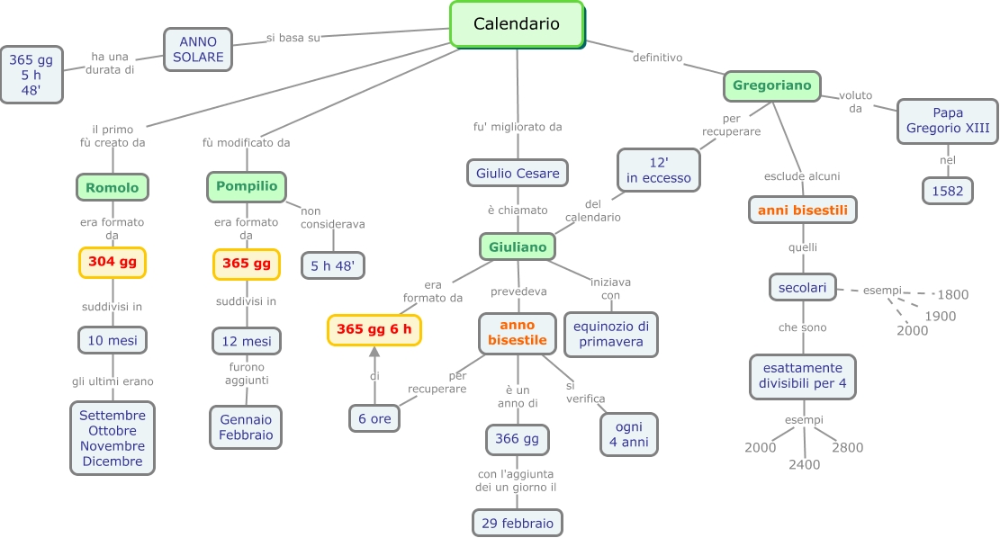 Questa Cmap, creata con IHMC CmapTools, contiene informazioni relative a: Calendario, Gregoriano per recuperare 12' in eccesso, 304 gg suddivisi in 10 mesi, Romolo era formato da 304 gg, 6 ore di 365 gg 6 h, anno bisestile per recuperare 6 ore, secolari esempi 2000, 365 gg suddivisi in 12 mesi, anno bisestile è un anno di 366 gg, secolari esempi 1800, esattamente divisibili per 4 esempi 2400, 12' in eccesso del calendario Giuliano, anni bisestili quelli secolari, anno bisestile si verifica ogni 4 anni, Pompilio non considerava 5 h 48', Giulio Cesare è chiamato Giuliano, Giuliano era formato da 365 gg 6 h, esattamente divisibili per 4 esempi 2800, Calendario fù modificato da Pompilio, Calendario si basa su ANNO SOLARE, Calendario fu' migliorato da Giulio Cesare