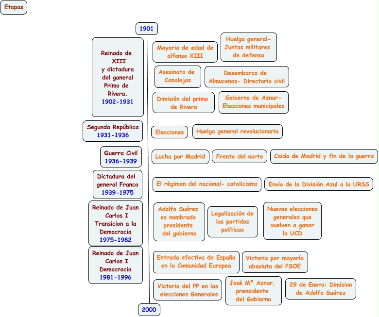 Este mapa conceptual tiene información relacionada a: 11.Ana Estrada Serrano. España siglo XX, 1901 2000