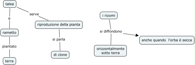 Questa Cmap, creata con IHMC CmapTools, contiene informazioni relative a: fusto particolare, talea è rametto, talea serve riproduzione della pianta, rametto piantato terra, riproduzione della pianta si parla di clone, i rizomi si diffondono orizzontalmente sotto terra, i rizomi si diffondono anche quando l'erba è secca