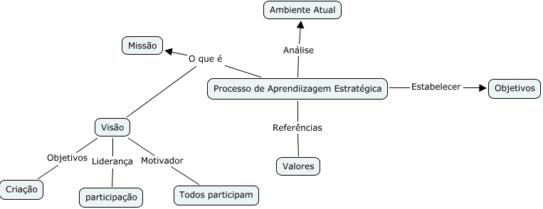Este Mapa Conceitual tem informações relacionadas a: gerson, Visão Objetivos Criação, Visão Liderança participação, Processo de Aprendiizagem Estratégica Estabelecer Objetivos, Processo de Aprendiizagem Estratégica Referências Valores, Processo de Aprendiizagem Estratégica O que é Visão, Visão Motivador Todos participam, Processo de Aprendiizagem Estratégica Análise Ambiente Atual, Processo de Aprendiizagem Estratégica O que é Missão