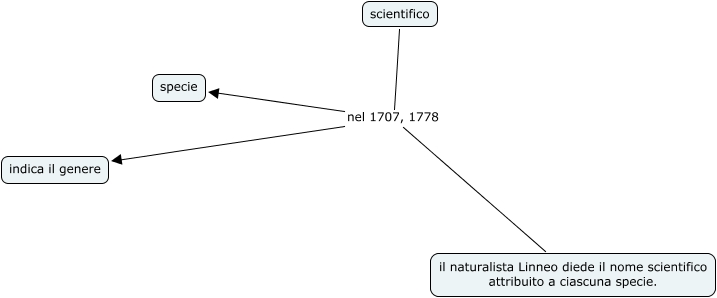 Questa Cmap, creata con IHMC CmapTools, contiene informazioni relative a: scientifico, scientifico nel 1707, 1778 specie, scientifico nel 1707, 1778 indica il genere, scientifico nel 1707, 1778 il naturalista Linneo diede il nome scientifico attribuito a ciascuna specie.