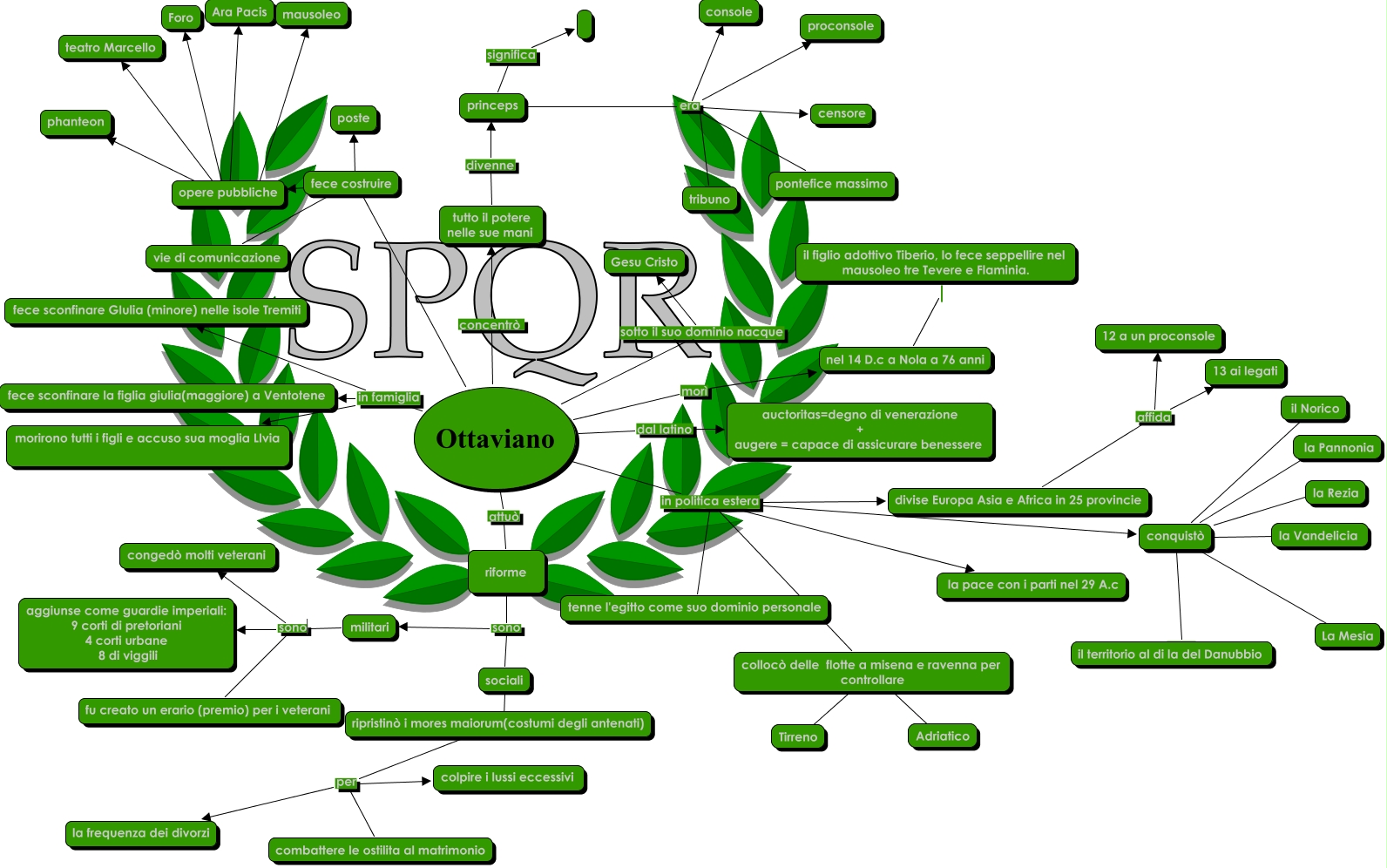 Questa Mappa Concettuale ha informazioni correlate a: mappa liliana riccardo e matteo, opere pubbliche ???? teatro Marcello, Ottaviano in politica estera tenne l'egitto come suo dominio personale, opere pubbliche ???? Foro, opere pubbliche ???? Ara Pacis, Ottaviano in politica estera divise Europa Asia e Africa in 25 provincie, Ottaviano in politica estera collocò delle flotte a misena e ravenna per controllare, ripristinò i mores maiorum(costumi degli antenati) per combattere le ostilita al matrimonio, collocò delle flotte a misena e ravenna per controllare ???? Adriatico, conquistò ???? la Rezia, militari sono fu creato un erario (premio) per i veterani, princeps era censore, princeps era console, divise Europa Asia e Africa in 25 provincie affida 12 a un proconsole, ripristinò i mores maiorum(costumi degli antenati) per colpire i lussi eccessivi, princeps era proconsole, Ottaviano in politica estera conquistò, conquistò ???? la Vandelicia, riforme sono sociali, ripristinò i mores maiorum(costumi degli antenati) per la frequenza dei divorzi, opere pubbliche ???? phanteon