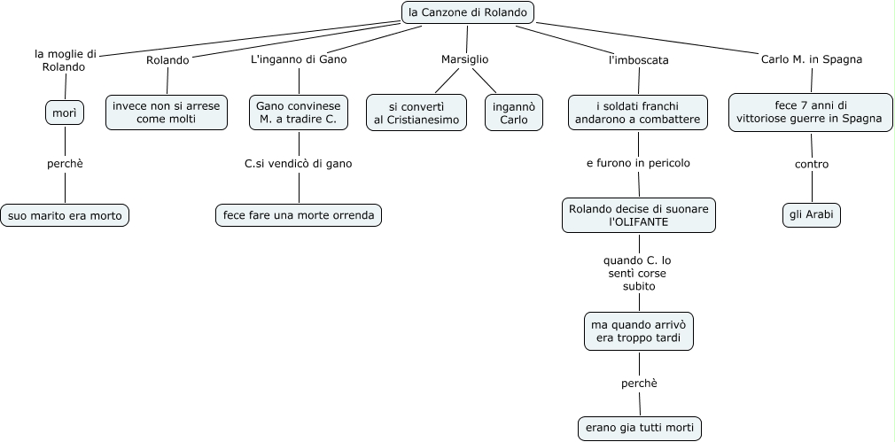 Questa Cmap, creata con IHMC CmapTools, contiene informazioni relative a: la canzone di rolando, Rolando decise di suonare l'OLIFANTE quando C. lo sentì corse subito ma quando arrivò era troppo tardi, ma quando arrivò era troppo tardi perchè erano gia tutti morti, la Canzone di Rolando Marsiglio ingannò Carlo, la Canzone di Rolando Carlo M. in Spagna fece 7 anni di vittoriose guerre in Spagna, fece 7 anni di vittoriose guerre in Spagna contro gli Arabi, la Canzone di Rolando l'imboscata i soldati franchi andarono a combattere, la Canzone di Rolando L'inganno di Gano Gano convinese M. a tradire C., la Canzone di Rolando Marsiglio si convertì al Cristianesimo, Gano convinese M. a tradire C. C.si vendicò di gano fece fare una morte orrenda, la Canzone di Rolando Rolando invece non si arrese come molti, la Canzone di Rolando la moglie di Rolando morì, i soldati franchi andarono a combattere e furono in pericolo Rolando decise di suonare l'OLIFANTE, morì perchè suo marito era morto