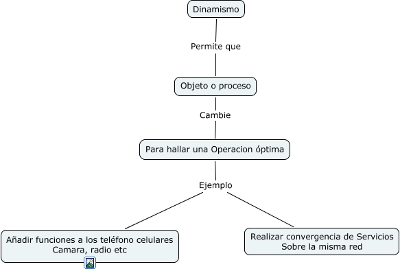 Este Cmap, tiene información relacionada con: Dinamismo, Para hallar una Operacion óptima Ejemplo Añadir funciones a los teléfono celulares Camara, radio etc, Para hallar una Operacion óptima Ejemplo Realizar convergencia de Servicios Sobre la misma red, Objeto o proceso Cambie Para hallar una Operacion óptima, Dinamismo Permite que Objeto o proceso