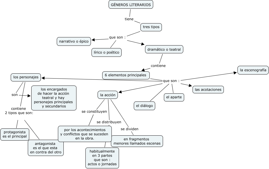 Este mapa conceptual tiene información relacionada a: Ana Guerra Ramírez nº8 Lengua, los personajes son los encargados de hacer la acción teatral y hay personajes principales y secundarios, 6 elementos principales que son : la escenografía, 6 elementos principales que son : los personajes, los personajes contiene 2 tipos que son: protagonista es el principal, GÉNEROS LITERARIOS tiene tres tipos, la acción se dividen en fragmentos menores llamados escenas, la acción se distribuyen habitualmente en 3 partes que son : actos o jornadas, la acción se constituyen por los acontecimientos y conflictos que se suceden en la obra., 6 elementos principales que son : el diálogo, tres tipos que son : dramático o teatral
