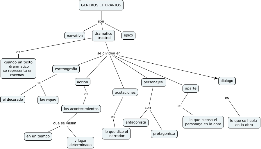 Este mapa conceptual tiene información relacionada a: jose manuel barea muñoz nº2 el teatro, GENEROS LITERARIOS son narrativo, aparte es lo que piensa el personaje en la obra, personajes son protagonista, los acontecimientos que se vasan en un tiempo, dramatico treatral se dividen en acotaciones, GENEROS LITERARIOS son dramatico treatral, los acontecimientos que se vasan y lugar determinado, accion es los acontecimientos, acotaciones es lo que dice el narrador, dramatico treatral se dividen en dialogo