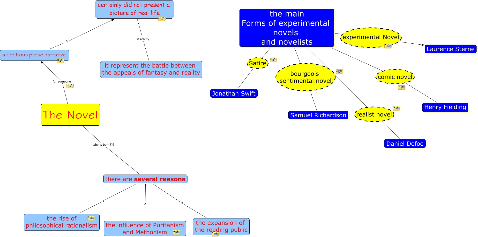 Questa Mappa Concettuale ha informazioni correlate a: the rise of the novel by Pala, certainly did not present a picture of real life in reality it represent the battle between the appeals of fantasy and reality, there are several reasons 3 the expansion of the reading public, the main Forms of experimental novels and novelists bourgeois sentimental novel Samuel Richardson, the main Forms of experimental novels and novelists realist novel Daniel Defoe, a fictitious prose narrative but certainly did not present a picture of real life, there are several reasons 2 the influence of Puritanism and Methodism, the main Forms of experimental novels and novelists Satire Jonathan Swift, the main Forms of experimental novels and novelists experimental Novel Laurence Sterne, The Novel why is born??? there are several reasons, The Novel for someone a fictitious prose narrative, the main Forms of experimental novels and novelists comic novel Henry Fielding, there are several reasons 1 the rise of philosophical rationalism