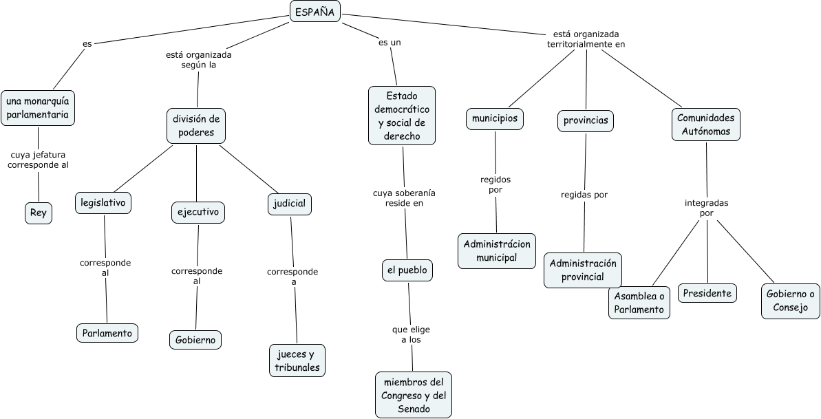 Este mapa conceptual tiene información relacionada a: Manuel Martín Reina Nº 20 3ºB UD11, Comunidades Autónomas integradas por Gobierno o Consejo, Comunidades Autónomas integradas por Presidente, Estado democrático y social de derecho cuya soberanía reside en el pueblo, judicial corresponde a jueces y tribunales, ESPAÑA es un Estado democrático y social de derecho, división de poderes ???? ejecutivo, legislativo corresponde al Parlamento, ESPAÑA es una monarquía parlamentaria, ejecutivo corresponde al Gobierno, ESPAÑA está organizada territorialmente en municipios