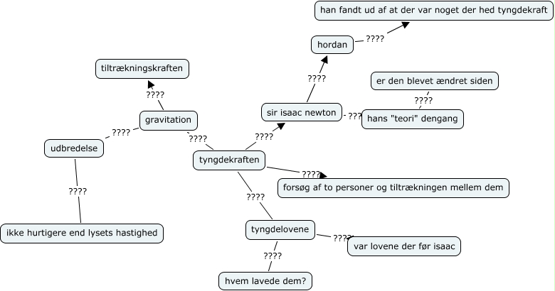 This Concept Map, created with IHMC CmapTools, has information related to: ida og frederik, sir isaac newton ???? hordan, sir isaac newton ???? hans "teori" dengang, hordan ???? han fandt ud af at der var noget der hed tyngdekraft, tyngdekraften ???? forsøg af to personer og tiltrækningen mellem dem, tyngdekraften ???? sir isaac newton, hans "teori" dengang ???? er den blevet ændret siden, tyngdekraften ???? tyngdelovene, tyngdelovene ???? var lovene der før isaac, gravitation ???? tiltrækningskraften, udbredelse ???? ikke hurtigere end lysets hastighed, tyngdelovene ???? hvem lavede dem?, gravitation ???? udbredelse, tyngdekraften ???? gravitation