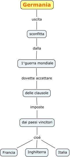 Questa Cmap, creata con IHMC CmapTools, contiene informazioni relative a: germania, sconfitta dalla 1°guerra mondiale, delle clausole imposte dai paesi vincitori, 1°guerra mondiale dovette accettare delle clausole, Germania uscita sconfitta, dai paesi vincitori cioè Francia, dai paesi vincitori cioè Italia, dai paesi vincitori cioè Inghilterra