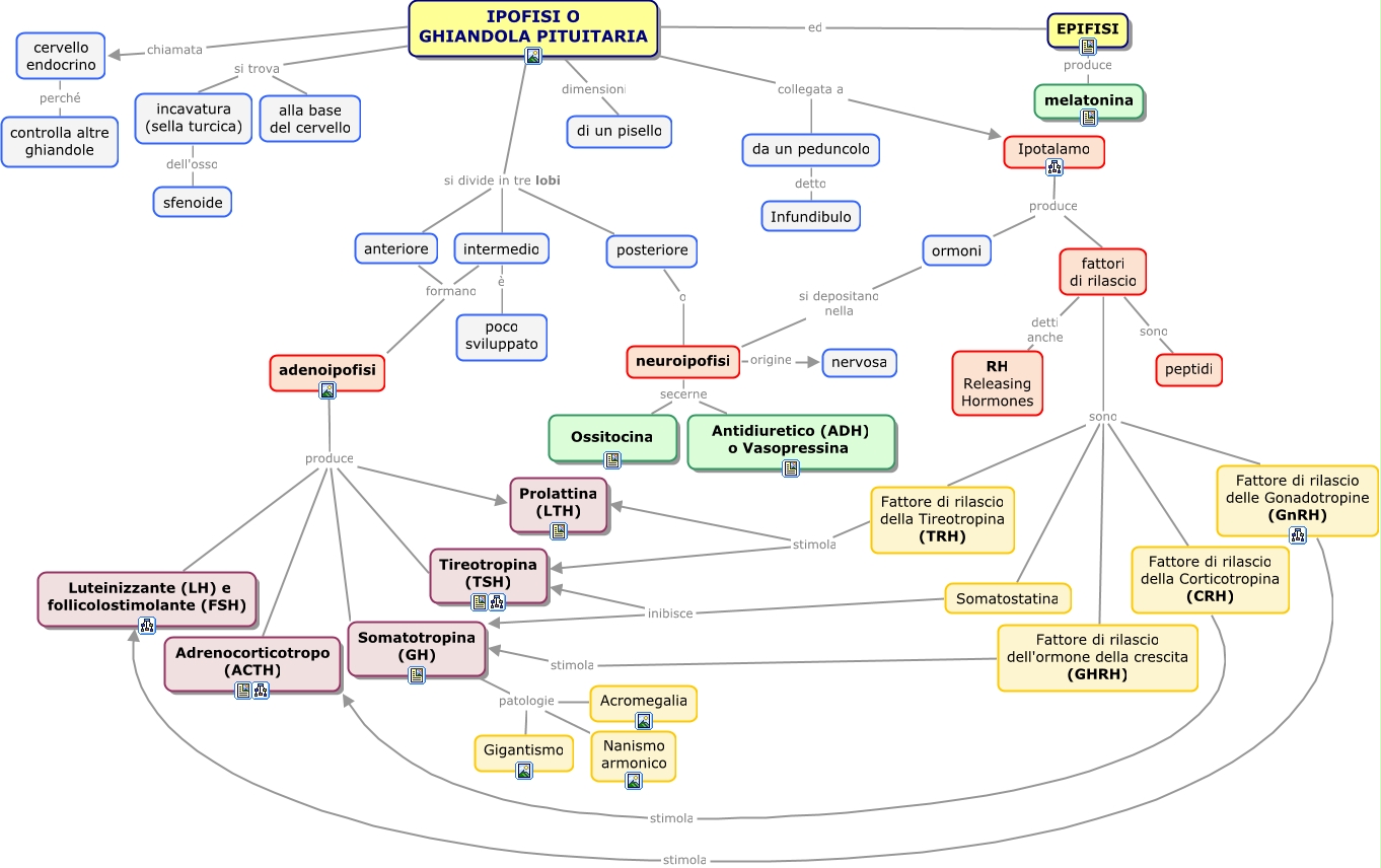 Questa Cmap, creata con IHMC CmapTools, contiene informazioni relative a: Ipofisi, Somatotropina (GH) patologie Nanismo armonico, Fattore di rilascio della Tireotropina (TRH) stimola Tireotropina (TSH), IPOFISI O GHIANDOLA PITUITARIA dimensioni di un pisello, Somatotropina (GH) patologie Gigantismo, anteriore formano adenoipofisi, Somatotropina (GH) patologie Acromegalia, Somatostatina inibisce Somatotropina (GH), neuroipofisi secerne Antidiuretico (ADH) o Vasopressina, adenoipofisi produce Tireotropina (TSH), cervello endocrino perché controlla altre ghiandole, ormoni si depositano nella neuroipofisi, adenoipofisi produce Adrenocorticotropo (ACTH), IPOFISI O GHIANDOLA PITUITARIA collegata a Ipotalamo, intermedio formano adenoipofisi, Fattore di rilascio della Corticotropina (CRH) stimola Adrenocorticotropo (ACTH), fattori di rilascio sono peptidi, fattori di rilascio sono Fattore di rilascio della Corticotropina (CRH), neuroipofisi secerne Ossitocina, IPOFISI O GHIANDOLA PITUITARIA si trova incavatura (sella turcica), posteriore o neuroipofisi