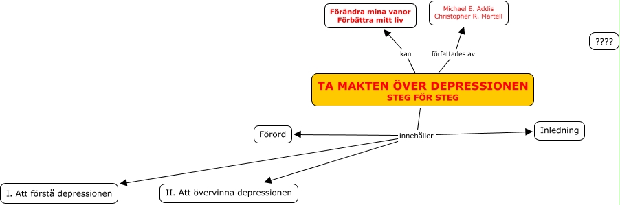 Den här kartan innehåller information om: taMaktenÖverDepressionen_AddisMartell, TA MAKTEN ÖVER DEPRESSIONEN STEG FÖR STEG innehåller Inledning, TA MAKTEN ÖVER DEPRESSIONEN STEG FÖR STEG innehåller I. Att förstå depressionen, TA MAKTEN ÖVER DEPRESSIONEN STEG FÖR STEG kan Förändra mina vanor Förbättra mitt liv, TA MAKTEN ÖVER DEPRESSIONEN STEG FÖR STEG författades av Michael E. Addis Christopher R. Martell, TA MAKTEN ÖVER DEPRESSIONEN STEG FÖR STEG innehåller II. Att övervinna depressionen, TA MAKTEN ÖVER DEPRESSIONEN STEG FÖR STEG innehåller Förord