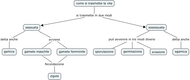 Questa Cmap, creata con IHMC CmapTools, contiene informazioni relative a: come si trasmette la vita, sessuata avviene gamete maschile, assessuata può avvenire in tre modi diversi sporulazione, assessuata può avvenire in tre modi diversi scissione, gamete femminile fecondazione zigote, assessuata può avvenire in tre modi diversi gemmazione, assessuata detta anche agamica, sessuata avviene gamete femminile, come si trasmette la vita si trasmette in due modi sessuata, come si trasmette la vita si trasmette in due modi assessuata, sessuata detta anche gamica, gamete maschile fecondazione zigote
