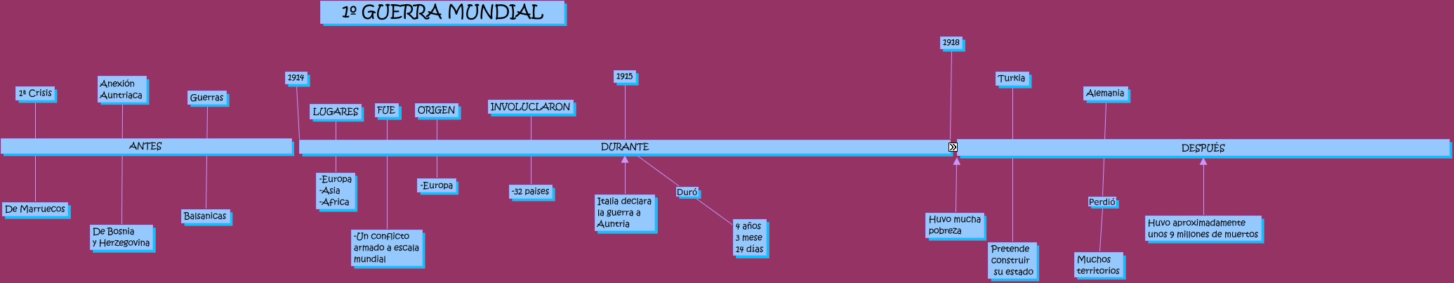 Este mapa conceptual tiene información relacionada a: 16.María López Obregón.GUERRA MUNDIAl, 1918 DURANTE, Huvo mucha pobreza DESPUÉS, LUGARES -Europa -Asia -Africa, 1914 DURANTE, Huvo aproximadamente unos 9 millones de muertos DESPUÉS, INVOLUCLARON -32 paises, 1ª Crisis De Marruecos, Alemania Perdió Muchos territorios, DURANTE Duró 4 años 3 mese 14 días, 1915 DURANTE