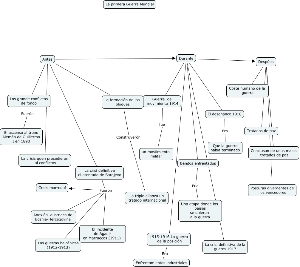 Este mapa conceptual tiene información relacionada a: 14.Rocío Moreno Reyes .Primera guerra mundial, Despúes Tratados de paz, Antes La crisi definitiva el atentado de Sarajevo, Durante 1915-1916 La guerra de la posición, Durante La crisi definitiva de la guerra 1917, Antes Durante, La crisi definitiva el atentado de Sarajevo Fuerón El incidente de Agadir en Marruecos (1911), Durante Despúes, Antes Los grande conflictos de fondo, Guerra de movimiento 1914 fue un moviimiento militar, Despúes Posturas divergentes de los vencedores