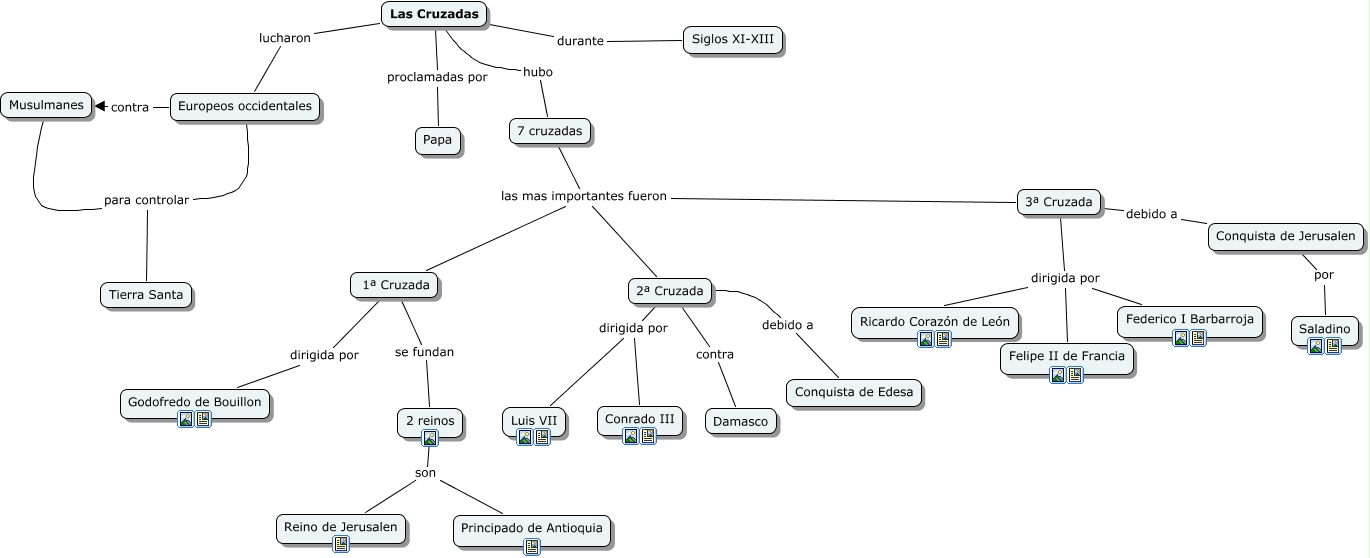Cruzadas, 7 cruzadas las mas importantes fueron 1ª Cruzada, 3ª Cruzada debido a Conquista de Jerusalen, Las Cruzadas durante Siglos XI-XIII, Conquista de Jerusalen por Saladino, 1ª Cruzada se fundan 2 reinos, 1ª Cruzada dirigida por Godofredo de Bouillon, 3ª Cruzada dirigida por Ricardo Corazón de León, 2ª Cruzada las mas importantes fueron 1ª Cruzada, 2ª Cruzada debido a Conquista de Edesa, 3ª Cruzada las mas importantes fueron 1ª Cruzada