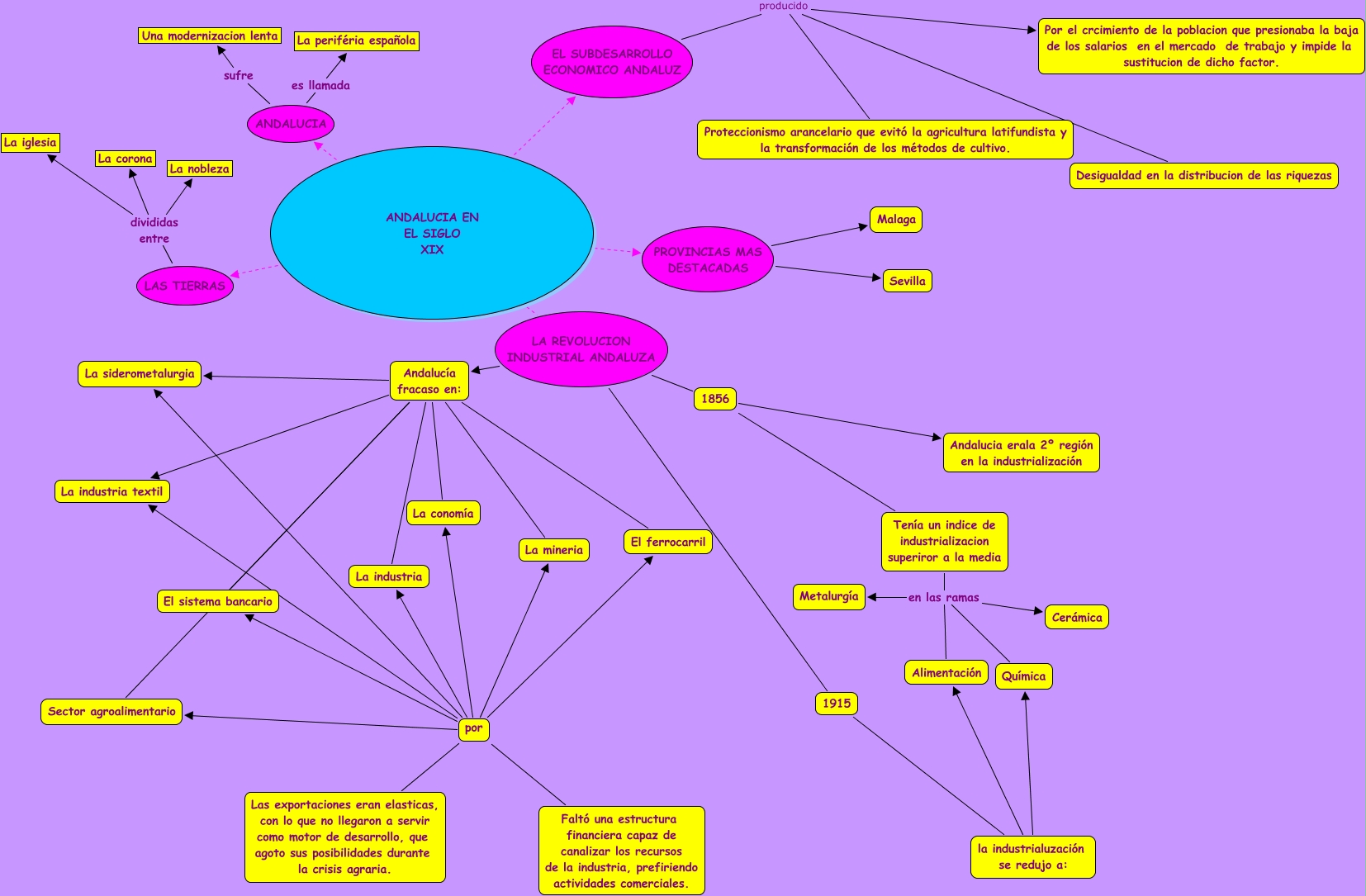 02.Marina Aragon de Lema.recuperación 2º trimestre.Andalucia en el siglo XIX, EL SUBDESARROLLO ECONOMICO ANDALUZ producido Desigualdad en la distribucion de las riquezas, la industrialuzación se redujo a: Alimentación, 1856 Tenía un indice de industrializacion superiror a la media, Tenía un indice de industrializacion superiror a la media en las ramas Metalurgía, ANDALUCIA EN EL SIGLO XIX PROVINCIAS MAS DESTACADAS, Andalucía fracaso en: La siderometalurgia, por Las exportaciones eran elasticas, con lo que no llegaron a servir como motor de desarrollo, que agoto sus posibilidades durante la crisis agraria., Andalucía fracaso en: La conomía, la industrialuzación se redujo a: Química, LAS TIERRAS divididas entre La corona