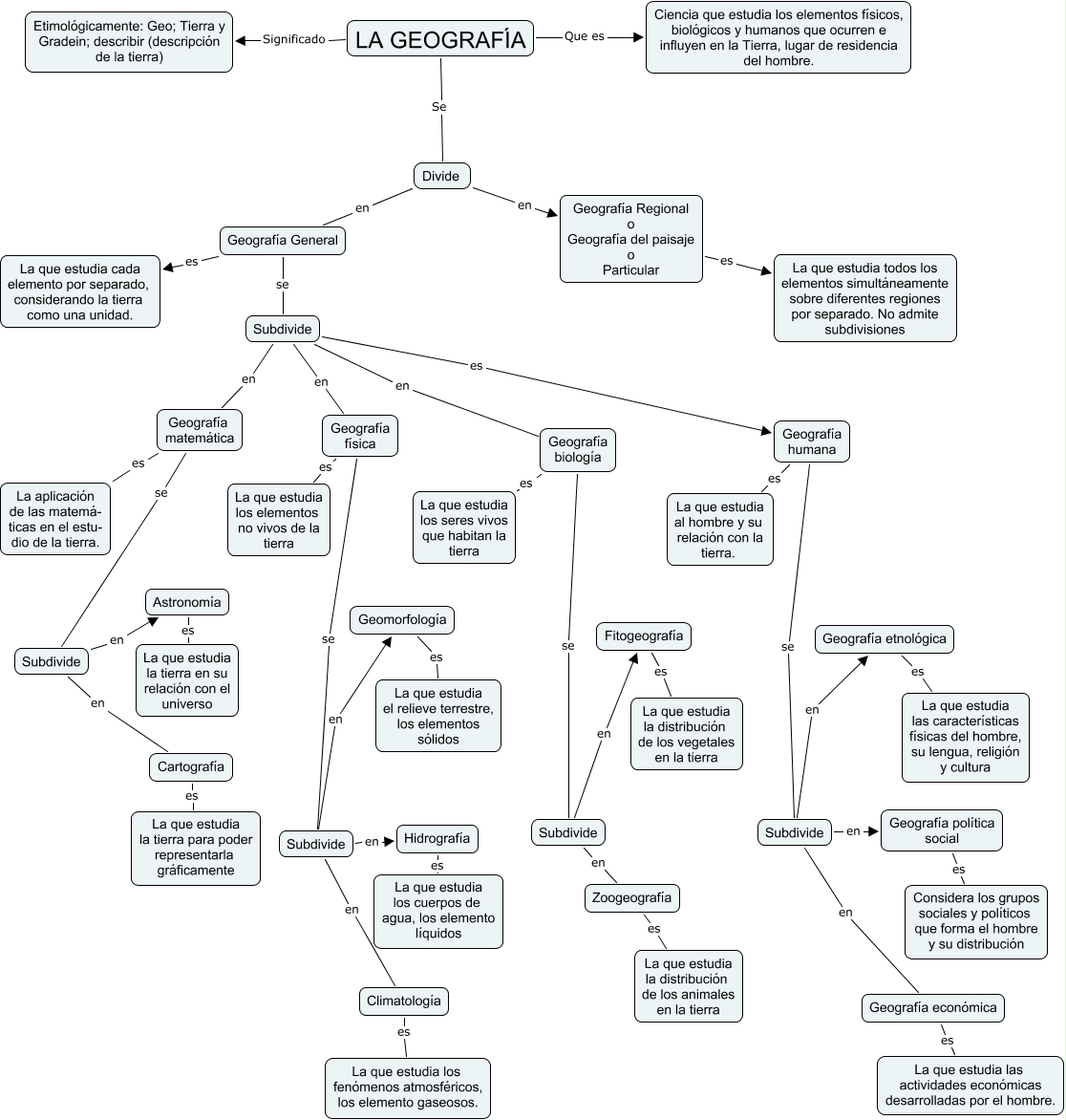 Este Cmap, tiene información relacionada con: La Geografía, Subdivide en Geografía económica, Subdivide en Geografía etnológica, Geografía humana se Subdivide, Subdivide en Zoogeografía, LA GEOGRAFÍA Que es Ciencia que estudia los elementos físicos, biológicos y humanos que ocurren e influyen en la Tierra, lugar de residencia del hombre., Zoogeografía es La que estudia la distribución de los animales en la tierra, Subdivide en Geografía política social, LA GEOGRAFÍA Se Divide, Geografía política social es Considera los grupos sociales y políticos que forma el hombre y su distribución, Geografía General se Subdivide, LA GEOGRAFÍA Significado Etimológicamente: Geo; Tierra y Gradein; describir (descripción de la tierra), Geografía biología es La que estudia los seres vivos que habitan la tierra, Astronomía es La que estudia la tierra en su relación con el universo, Geografía física es La que estudia los elementos no vivos de la tierra, Geografía matemática se Subdivide, Subdivide en Cartografía, Cartografía es La que estudia la tierra para poder representarla gráficamente, Geografía humana es La que estudia al hombre y su relación con la tierra., Subdivide es Geografía humana, Geomorfología es La que estudia el relieve terrestre, los elementos sólidos