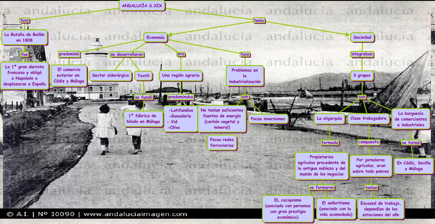 Este Cmap, tiene información relacionada con: 16.María López Obregón.Recuperación, 3 grupos son La burguesía de comerciantes e industriales, Economía se desarrollaron Sector siderúrgico, La Batalla de Bailén en 1808 fue La 1ª gran derrota francesa y obligó a Napoleón a desplazarse a España, Problemas en la industrialización son No tenían suficientes fuentes de energía (carbón vegetal y mineral), ANDALUCÍA S.XIX tenía Economía, Por jornaleros agrícolas, eran sobre todo pobres tenían Escased de trabajo, dependían de las estaciones del año, Economía era Una región agraria, Propietarios agrícolas procedente de la antigua nobleza y del mundo de los negocios se formaron EL caciquismo (asociada con personas con gran prestigio económico), Problemas en la industrialización son Pocas inversiones, 3 grupos son Clase trabajadora, 3 grupos son La oligarquía, Propietarios agrícolas procedente de la antigua nobleza y del mundo de los negocios se formaron El señoritismo (asociado con la vida acomodada), Una región agraria predominaba -Latifundios -Ganadería - Vid -Olivo, ANDALUCÍA S.XIX tenía Sociedad, Sociedad integraban 3 grupos, Economía se desarrollaron Textil, Economía predominó El comercio exterior en Cádiz y Málaga, La burguesía de comerciantes e industriales se formó En Cádiz, Sevilla y Málaga, Textil se fundó 1ª fábrica de hilado en Málaga, Economía tuvo Problemas en la industrialización