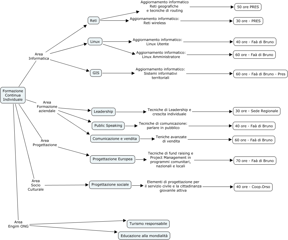 Questa Cmap, creata con IHMC CmapTools, contiene informazioni relative a: FCI definitivo, Progettazione sociale Elementi di progettazione per il servizio civile e la cittadinanza giovanile attiva 40 ore - Coop.Orso, Formazione Continua Individuale Area Informatica GIS, Formazione Continua Individuale Area Progettazione Progettazione Europea, Reti Aggiornamento informatico: Reti wireless 30 ore - PRES, Comunicazione e vendita Teniche avanzate di vendita 60 ore - Faà di Bruno, Formazione Continua Individuale Area Socio Culturale Progettazione sociale, Formazione Continua Individuale Area Engim ONG Turismo responsabile, Formazione Continua Individuale Area Formazione aziendale Public Speaking, Formazione Continua Individuale Area Formazione aziendale Leadership, Linux Aggiornamento informatico: Linux Amministratore 60 ore - Faà di Bruno, Public Speaking Tecniche di comunicazione: parlare in pubblico 40 ore - Faà di Bruno, Formazione Continua Individuale Area Formazione aziendale Comunicazione e vendita, GIS Aggiornamento informatico: Sistemi informativi territoriali 60 ore - Faà di Bruno - Pres, Reti Aggiornamento informatico Reti geografiche e tecniche di routing 50 ore PRES, Formazione Continua Individuale Area Informatica Reti, Leadership Tecniche di Leadership e crescita individuale 30 ore - Sede Regionale, Formazione Continua Individuale Area Informatica Linux, Linux Aggiornamento informatico: Linux Utente 40 ore - Faà di Bruno, Formazione Continua Individuale Area Engim ONG Educazione alla mondialità, Progettazione Europea Tecniche di fund raising e Project Management in programmi comunitari, nazionali e locali 70 ore - Faà di Bruno