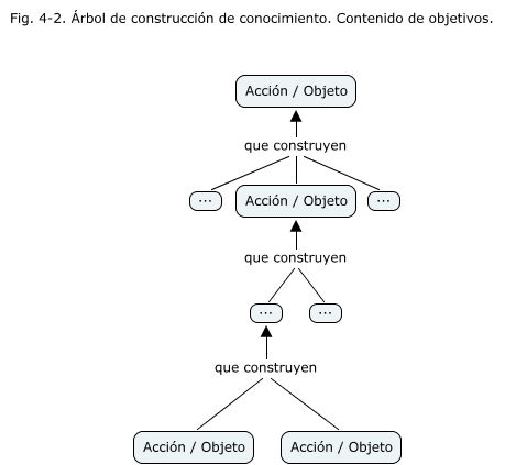 Este Cmap, tiene información relacionada con: Fig 4-2. Árbol de construcción de conocimiento. Contenido, ... que construyen Acción / Objeto, Acción / Objeto que construyen ..., Acción / Objeto que construyen ..., ... que construyen Acción / Objeto, ... que construyen Acción / Objeto, Acción / Objeto que construyen Acción / Objeto, ... que construyen Acción / Objeto