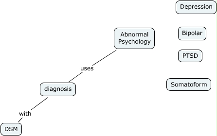 This Concept Map, created with IHMC CmapTools, has information related to: christen barden 20083, Abnormal Psychology uses diagnosis, diagnosis with DSM