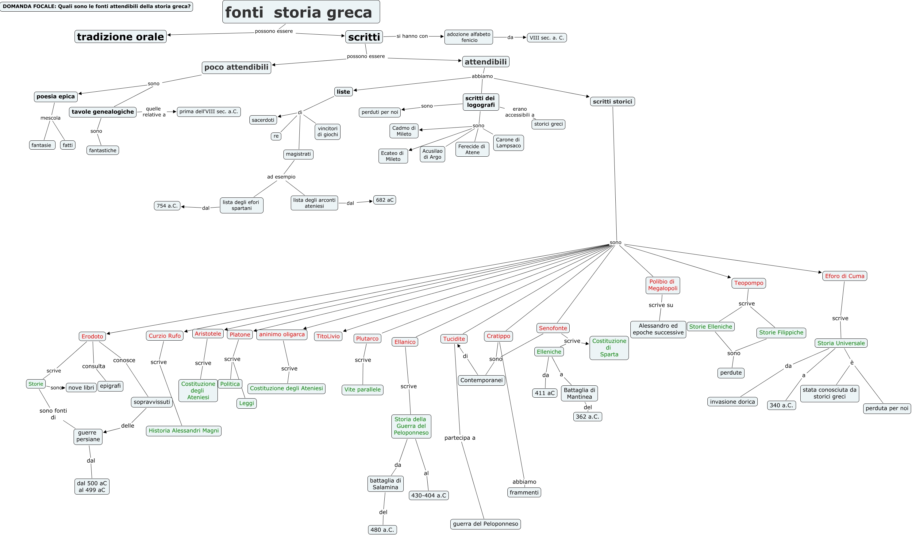 Le fonti della storia greca, battaglia di Salamina del 480 a.C., Battaglia di Mantinea del 362 a.C., Storia Universale è perduta per noi, Erodoto consulta epigrafi, Erodoto conosce sopravvissuti, Platone scrive Leggi, liste di re, Elleniche a Battaglia di Mantinea, scritti dei logografi sono Ecateo di Mileto, liste di vincitori di giochi