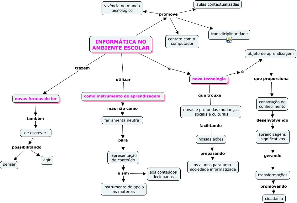 Mapa Vera, objeto de aprendizagem que proporciona construção de conhecimento, INFORMÁTICA NO AMBIENTE ESCOLAR promove aulas contextualizadas, INFORMÁTICA NO AMBIENTE ESCOLAR promove contato com o computador, construção de conhecimento desenvolvendo aprendizagens significativas, INFORMÁTICA NO AMBIENTE ESCOLAR utilizar como instrumento de aprendizagem, INFORMÁTICA NO AMBIENTE ESCOLAR promove vivência no mundo tecnológico, apresentação de conteúdo e sim aos conteúdos lecionados, aprendizagens significativas gerando transformações, transformações promovendo cidadania, nova tecnologia é objeto de aprendizagem