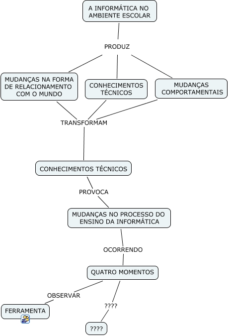 MAPA ILKA, MUDANÇAS NO PROCESSO DO ENSINO DA INFORMÁTICA OCORRENDO QUATRO MOMENTOS, QUATRO MOMENTOS OBSERVAR FERRAMENTA, CONHECIMENTOS TÉCNICOS PROVOCA MUDANÇAS NO PROCESSO DO ENSINO DA INFORMÁTICA, A INFORMÁTICA NO AMBIENTE ESCOLAR PRODUZ MUDANÇAS COMPORTAMENTAIS, MUDANÇAS NA FORMA DE RELACIONAMENTO COM O MUNDO TRANSFORMAM CONHECIMENTOS TÉCNICOS, CONHECIMENTOS TÉCNICOS TRANSFORMAM CONHECIMENTOS TÉCNICOS, A INFORMÁTICA NO AMBIENTE ESCOLAR PRODUZ CONHECIMENTOS TÉCNICOS, MUDANÇAS COMPORTAMENTAIS TRANSFORMAM CONHECIMENTOS TÉCNICOS, QUATRO MOMENTOS ???? ????, A INFORMÁTICA NO AMBIENTE ESCOLAR PRODUZ MUDANÇAS NA FORMA DE RELACIONAMENTO COM O MUNDO