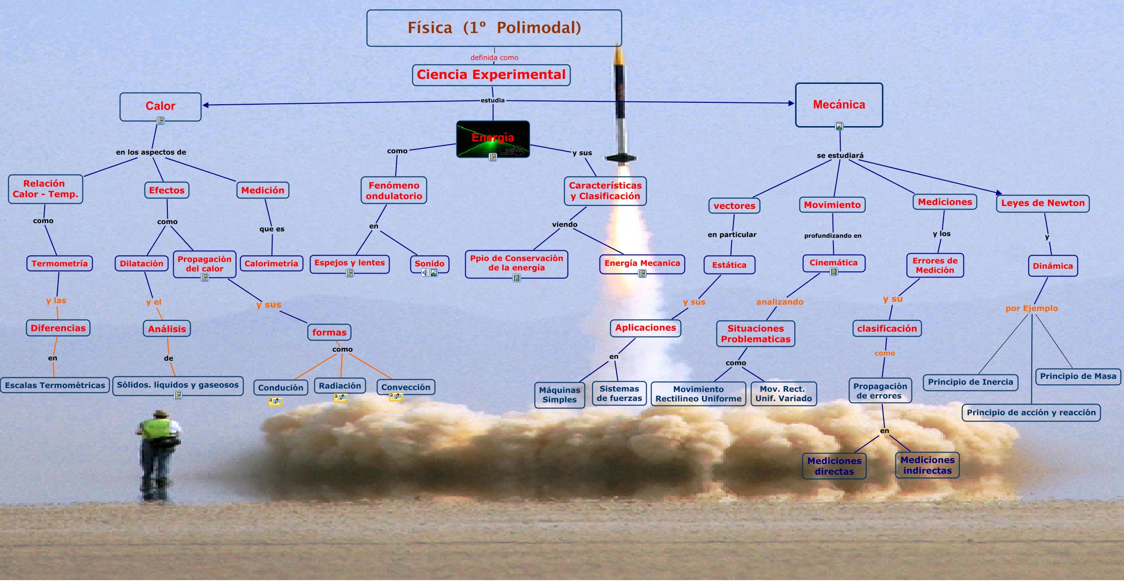 Este mapa conceptual tiene información relacionada a: Física de 1º Polimodal, Efectos como Dilatación, Diferencias en Escalas Termométricas, Aplicaciones en Sistemas de fuerzas, Propagación del calor y sus formas, vectores en particular Estática, Termometría y las Diferencias, Mediciones y los Errores de Medición, Calor en los aspectos de Medición, Movimiento profundizando en Cinemática, Ciencia Experimental estudia Calor