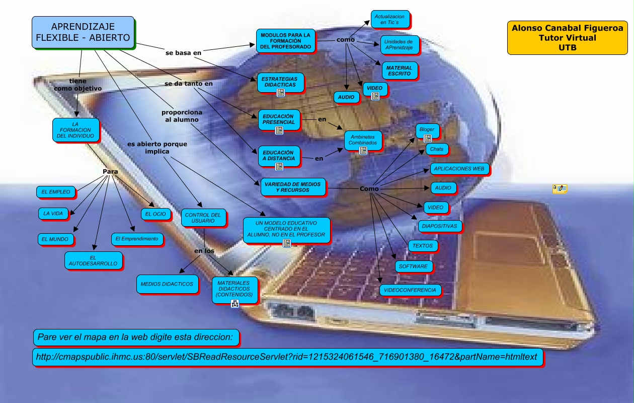 Este Cmap, tiene información relacionada con: APrendizaje Flexible y Abierto, TEXTOS Como DIAPOSITIVAS, VARIEDAD DE MEDIOS Y RECURSOS Como DIAPOSITIVAS, MODULOS PARA LA FORMACIÓN DEL PROFESORADO como AUDIO, APRENDIZAJE FLEXIBLE - ABIERTO se basa en MODULOS PARA LA FORMACIÓN DEL PROFESORADO, LA FORMACION DEL INDIVIDUO Para EL EMPLEO, LA FORMACION DEL INDIVIDUO Para EL MUNDO, TEXTOS Como Bloger, VARIEDAD DE MEDIOS Y RECURSOS Como Bloger, LA FORMACION DEL INDIVIDUO Para EL OCIO, EDUCACIÓN PRESENCIAL en Ambinetes Combinados, VARIEDAD DE MEDIOS Y RECURSOS Como APLICACIONES WEB, VARIEDAD DE MEDIOS Y RECURSOS Como VIDEOCONFERENCIA, LA FORMACION DEL INDIVIDUO Para El Emprendimiento, EDUCACIÓN A DISTANCIA en Ambinetes Combinados, LA FORMACION DEL INDIVIDUO Para LA VIDA, MODULOS PARA LA FORMACIÓN DEL PROFESORADO como VIDEO, CONTROL DEL USUARIO en los MEDIOS DIDACTICOS, VARIEDAD DE MEDIOS Y RECURSOS Como Chats, TEXTOS Como APLICACIONES WEB, MODULOS PARA LA FORMACIÓN DEL PROFESORADO como MATERIAL ESCRITO