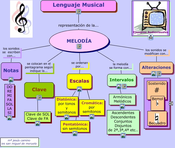 Este mapa conceptual tiene información relacionada a: melodia, Escalas ???? Pentatónica: sin semitonos, Lenguaje Musical representación de la... MELODÍA, Intervalos ???? Armónicos Melódicos, Armónicos Melódicos ???? Ascendentes Descendentes Conjuntos Disjuntos de 2ª,3ª,4ª etc.., MELODÍA los sonidos se escriben con... Notas, Notas ???? DO RE MI FA SOL LA SI, Escalas ???? Cromática: por semitonos, MELODÍA la melodía se forma con... Intervalos, Escalas ???? Diatónica: por tonos y semitonos, Alteraciones ???? las más utilizadas.., Clave ???? Clave de SOL Clave de FA, MELODÍA se ordenan por... Escalas, MELODÍA se colocan en el pentagrama según indique la... Clave, MELODÍA los sonidos se modifican con... Alteraciones