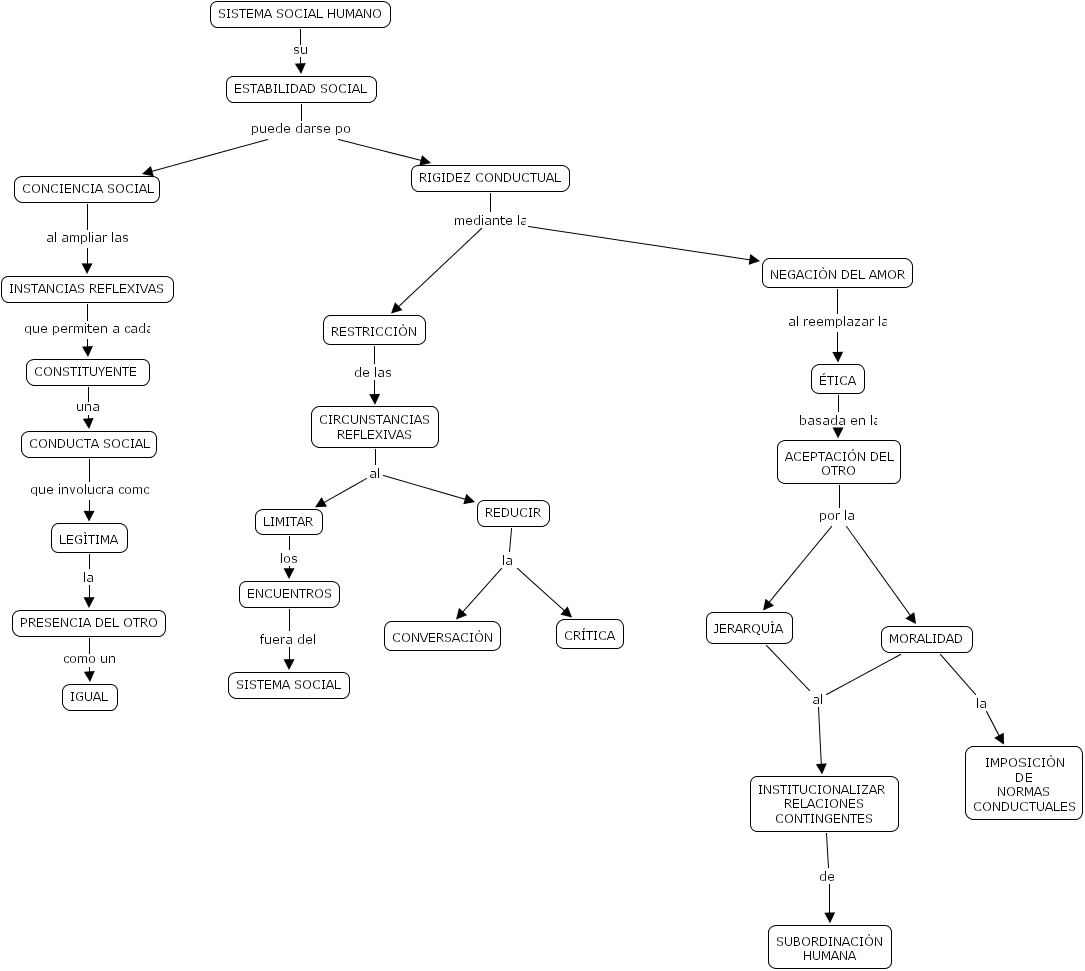 sistema social humano, cr�tica, subordinaci�n humana, moralidad, rigidez conductual, presencia del otro, igual, constituyente , instancias reflexivas, leg�tima, conversaci�n, institucionalizar relaciones contingentes, limitar, conciencia social, restricci�n, conducta social, negaci�n del amor, estabilidad social, sistema social humano, reducir, �tica, imposici�n de normas conductuales, circunstancias reflexivas, aceptaci�n del otro, sistema social, jerarqu�a, encuentros