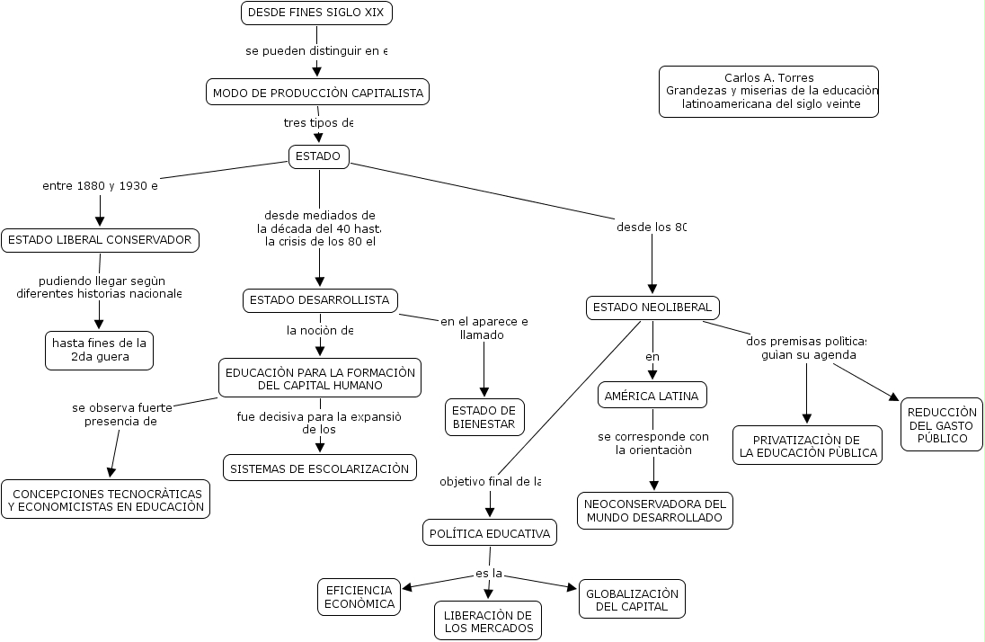torres - tres estados del modo de producci�n capitalista, educaci�n para la formaci�n del capital humano, pol�tica educativa, privatizaci�n de la educaci�n p�blica, estado desarrollista, estado neoliberal, concepciones tecnocr�ticas y economicistas en educaci�n, carlos a. torres grandezas y miserias de la educaci�n latinoamericana del siglo veinte, desde fines siglo xix, reducci�n del gasto p�blico, estado liberal conservador, sistemas de escolarizaci�n, estado, liberaci�n de los mercados, am�rica latina, hasta fines de la 2da guera, modo de producci�n capitalista, globalizaci�n del capital, neoconservadora del mundo desarrollado, estado de bienestar, eficiencia econ�mica