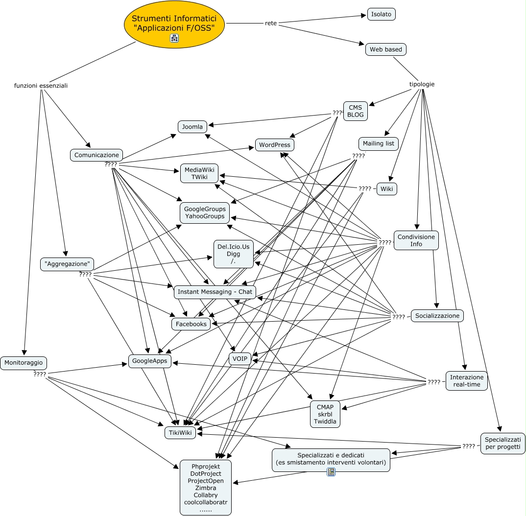 Questa Cmap, creata con IHMC CmapTools, contiene informazioni relative a: 4 Strumenti, Condivisione Info ???? Facebooks, Comunicazione ???? GoogleApps, Web based tipologie Specializzati per progetti, Specializzati per progetti ???? Specializzati e dedicati (es smistamento interventi volontari), Condivisione Info ???? WordPress, Mailing list ???? Instant Messaging - Chat, "Aggregazione" ???? GoogleGroups YahooGroups, Web based tipologie Socializzazione, Monitoraggio ???? TikiWiki, Wiki ???? TikiWiki, Wiki ???? Phprojekt DotProject ProjectOpen Zimbra Collabry coolcollaboratr ......, Comunicazione ???? CMAP skrbl Twiddla, Comunicazione ???? MediaWiki TWiki, Condivisione Info ???? Del.Icio.Us Digg /., Web based tipologie Mailing list, Comunicazione ???? Instant Messaging - Chat, Web based tipologie Wiki, Comunicazione ???? TikiWiki, "Aggregazione" ???? TikiWiki, "Aggregazione" ???? Instant Messaging - Chat