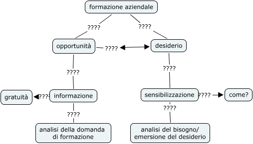 Questa Cmap, creata con IHMC CmapTools, contiene informazioni relative a: formazione aziendale. opportunità vs desiderio, informazione ???? gratuità, informazione ???? analisi della domanda di formazione, formazione aziendale ???? opportunità, opportunità ???? informazione, formazione aziendale ???? desiderio, sensibilizzazione ???? analisi del bisogno/ emersione del desiderio, sensibilizzazione ???? come?, opportunità ???? desiderio, desiderio ???? sensibilizzazione