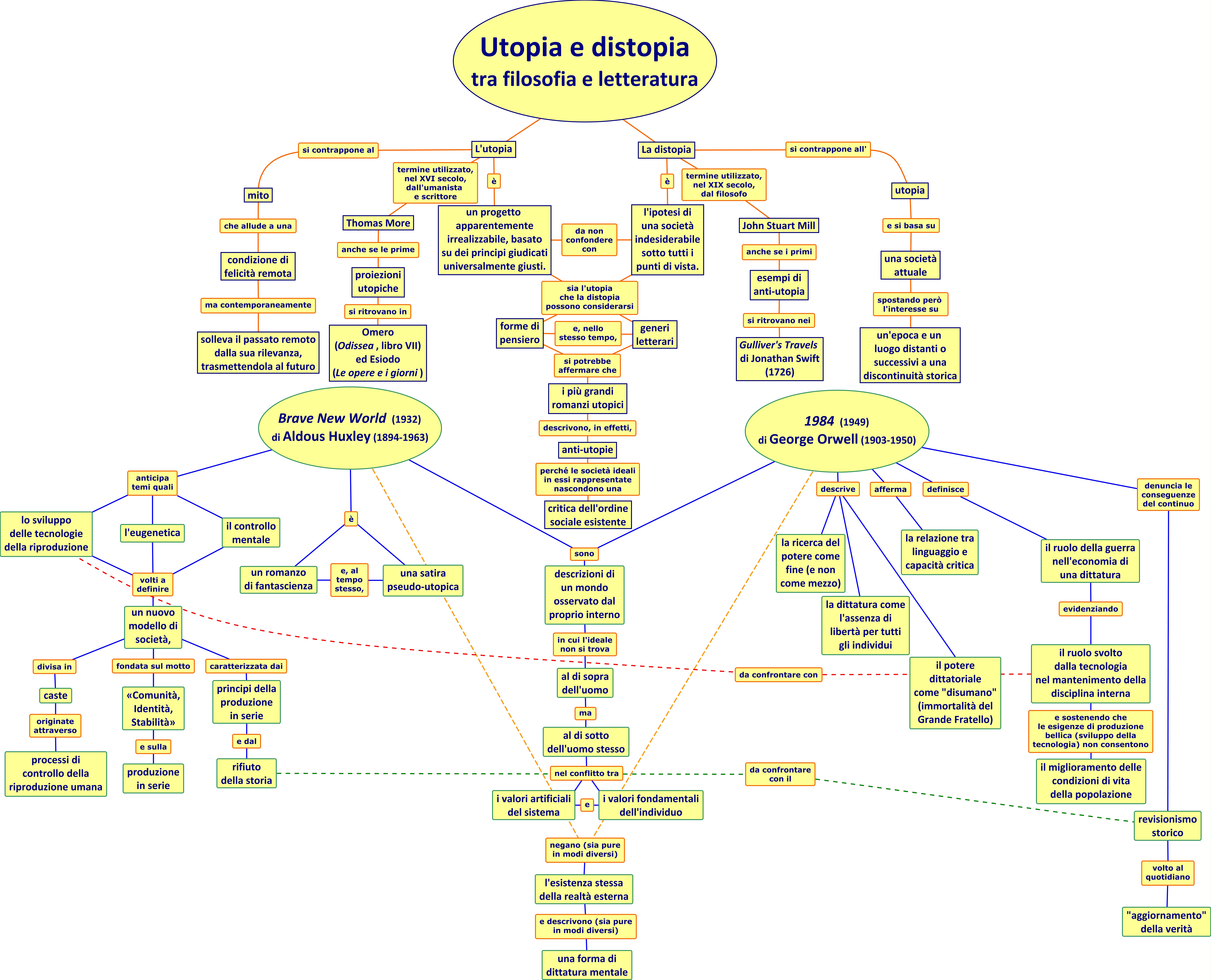 Questa Cmap, creata con IHMC CmapTools, contiene informazioni relative a: Utopia e distopia tra filosofia e letteratura, condizione di felicità remota ma contemporaneamente solleva il passato remoto dalla sua rilevanza, trasmettendola al futuro, principi della produzione in serie e dal rifiuto della storia, lo sviluppo delle tecnologie della riproduzione volti a definire un nuovo modello di società,, un romanzo di fantascienza e, al tempo stesso, una satira pseudo-utopica, La distopia termine utilizzato, nel XIX secolo, dal filosofo John Stuart Mill, Brave New World (1932) di Aldous Huxley (1894-1963) anticipa temi quali l'eugenetica, la dittatura come l'assenza di libertà per tutti gli individui descrive la ricerca del potere come fine (e non come mezzo), mito che allude a una condizione di felicità remota, l'eugenetica volti a definire il controllo mentale, L'utopia è un progetto apparentemente irrealizzabile, basato su dei principi giudicati universalmente giusti., Brave New World (1932) di Aldous Huxley (1894-1963) anticipa temi quali lo sviluppo delle tecnologie della riproduzione, 1984 (1949) di George Orwell (1903-1950) denuncia le conseguenze del continuo revisionismo storico, Thomas More anche se le prime proiezioni utopiche, caste originate attraverso processi di controllo della riproduzione umana, La distopia è l'ipotesi di una società indesiderabile sotto tutti i punti di vista., un progetto apparentemente irrealizzabile, basato su dei principi giudicati universalmente giusti. da non confondere con l'ipotesi di una società indesiderabile sotto tutti i punti di vista., forme di pensiero si potrebbe affermare che i più grandi romanzi utopici, un nuovo modello di società, divisa in caste, «Comunità, Identità, Stabilità» e sulla produzione in serie, 1984 (1949) di George Orwell (1903-1950) descrive la ricerca del potere come fine (e non come mezzo)