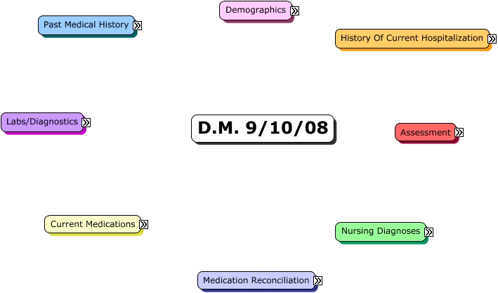 This Concept Map, created with IHMC CmapTools, has information related to: 9-10 CMAP Caddle, GI/GU 16:00 Abdomen is soft, no distention. Bowel sounds normoactive x4. No N/V. Continent. Voids independently. Characteristics of urine unknown., Cetirizine Brand Name Zyrtec, Integumentary 16:00 20 gauge IV running NS at 100ml/hr. Appropriately moist and warm to touch, mobile with adequate turgor. No signs of breakdown on pressure areas. R groin site is soft, tender, no s/s bleeding or hematoma, Knowledge defecit related to cardiac catheterization procedure. Intervention Provide a variety of informational materials for the client to take home after discharge including date of follow-up appointment, Simvastatin Nursing Indications Monitor hepatic, renal, and lipids. Administer in evening. Protect from light, store in cool environment, Losartan Reason for Recieving Hypertension management, Losartan Physician's Order 50mg PO with supper, Insulin Glargine Physician's Order 20 units subcutaneous HS, Simvastatin Physician's Order 20mg PO daily, Furosemide Reason for Recieving Hypertension, Insulin Glargine Nursing Indications Monitor for s/s Hypoglycemia, Furosemide Physician's Order 20 mg PO daily, Neuromuscular 16:00 A&Ox3, No muscle weakness, stable gait. Full ROMx4. PERRL, Losartan Nursing Indications Monitor/educate about orthosatic hypotension, monitor renal/hepatic studies and for cardiac dysrhythmias, CBC Interpretation Pt may have an anemia, RBC, Hgb, and Hct all decreased values, Simvastatin Reason for Recieving High cholesterol, L Heart Cath 9/10 Impressions: Minimal CAD, good LV Sheath removed at 14:30, Simvastatin Brand Name Zocor, Furosemide Nursing Indications Potassium wasting, Assess hydration & electrolytes. Administer in morning to avoid disrupting sleep., Cetirizine Physician's Order 10mg PO daily