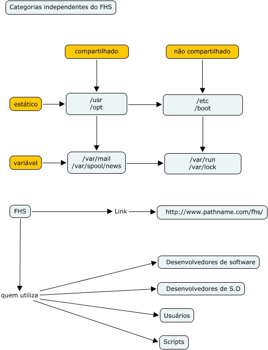 Esse mapa conceitual, produzido no IHMC CmapTools, tem a informação relacionada a: 01. FHS Categorias, /usr /opt /etc /boot, FHS Link http://www.pathname.com/fhs/, FHS quem utiliza Desenvolvedores de software, /etc /boot /var/run /var/lock, não compartilhado /etc /boot, estático /usr /opt, FHS quem utiliza Desenvolvedores de S.O, FHS quem utiliza Scripts, /usr /opt /var/mail /var/spool/news, variável /var/mail /var/spool/news, /var/mail /var/spool/news /var/run /var/lock, FHS quem utiliza Usuários, compartilhado /usr /opt