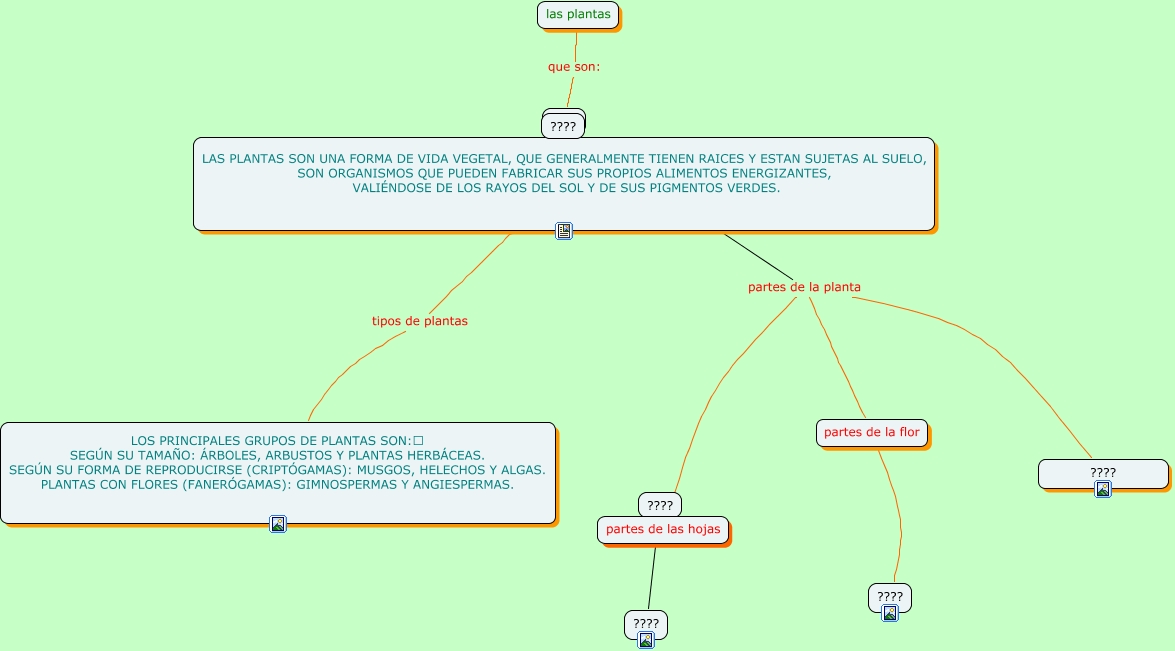 Este Cmap, tiene información relacionada con: agudelo, ???? partes de la planta ????, ???? partes de la planta partes de la flor, las plantas que son: ????, ???? ????, ???? partes de la planta partes de las hojas, LAS PLANTAS SON UNA FORMA DE VIDA VEGETAL, QUE GENERALMENTE TIENEN RAICES Y ESTAN SUJETAS AL SUELO, SON ORGANISMOS QUE PUEDEN FABRICAR SUS PROPIOS ALIMENTOS ENERGIZANTES, VALIÉNDOSE DE LOS RAYOS DEL SOL Y DE SUS PIGMENTOS VERDES. tipos de plantas LOS PRINCIPALES GRUPOS DE PLANTAS SON: SEGÚN SU TAMAÑO: ÁRBOLES, ARBUSTOS Y PLANTAS HERBÁCEAS. SEGÚN SU FORMA DE REPRODUCIRSE (CRIPTÓGAMAS): MUSGOS, HELECHOS Y ALGAS. PLANTAS CON FLORES (FANERÓGAMAS): GIMNOSPERMAS Y ANGIESPERMAS., partes de la flor ????
