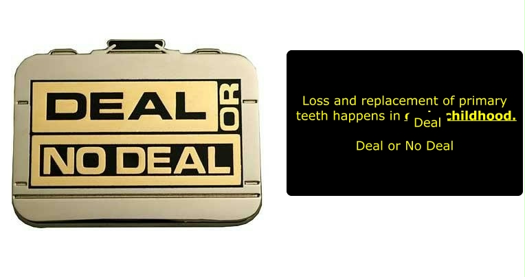 This Concept Map, created with IHMC CmapTools, has information related to: Q 3 PH, Deal Loss and replacement of primary teeth happens in early childhood. Deal or No Deal